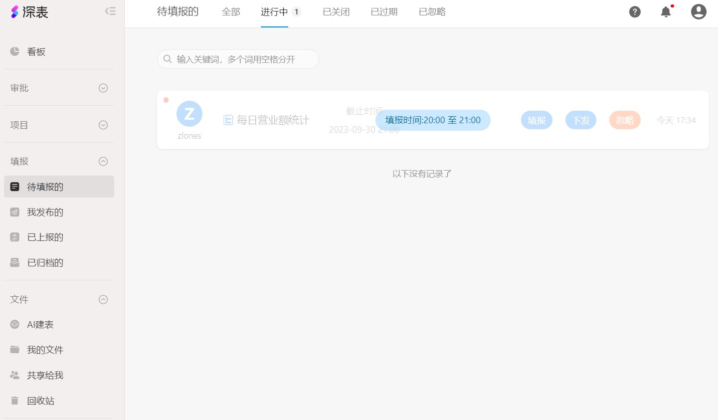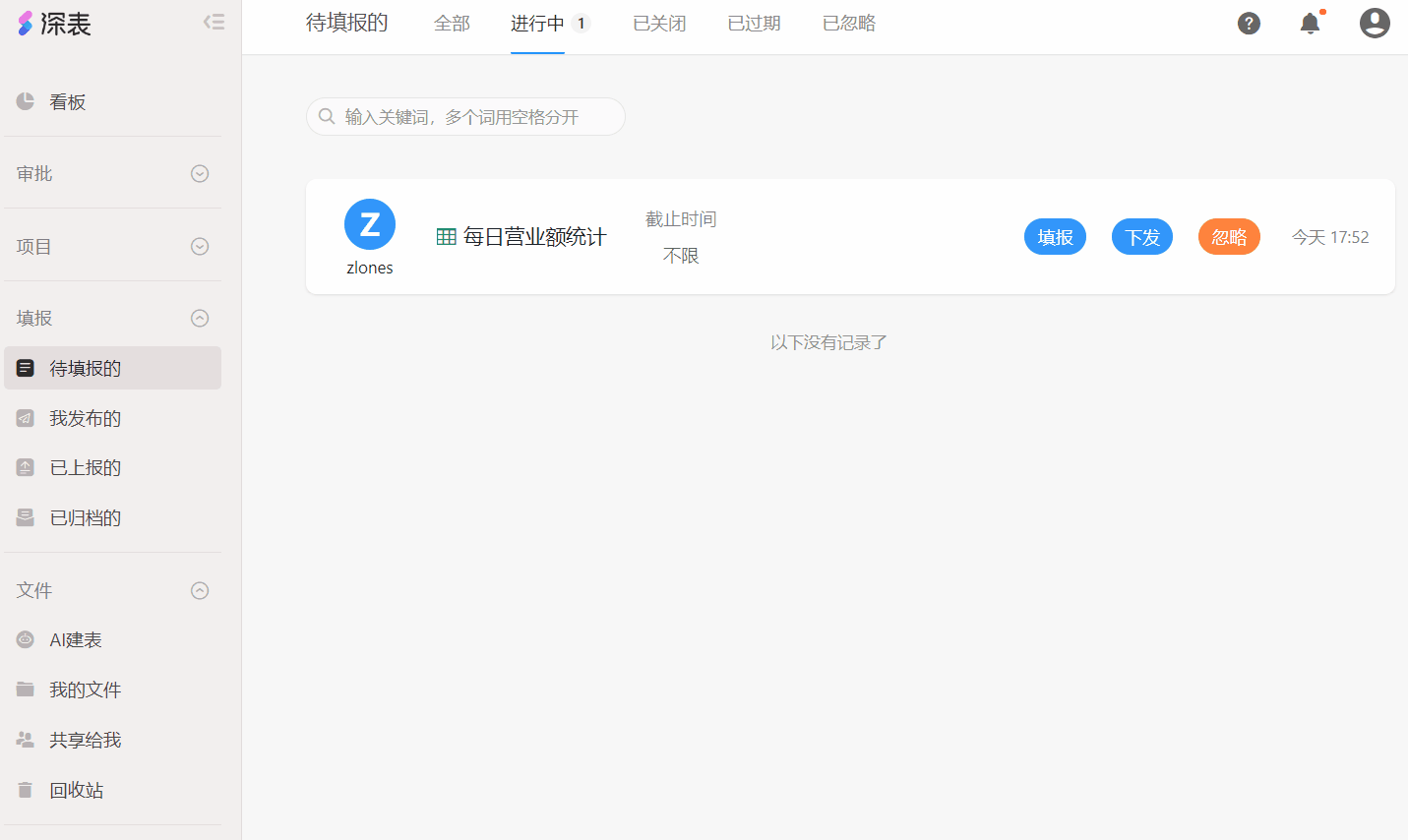 例如:发布人「zlones」将任务发送给「张三」,同时勾选「允许转发」,当「张三」收到填报任务后选择下发给「李四」并取消勾选「允许转发」,这时「李四」收到填报任务后只能「填报」而不能下发。