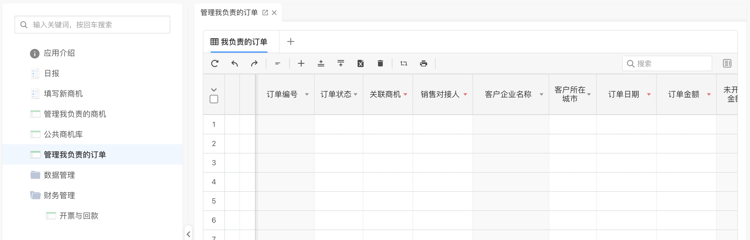 从每天的「日报」、「新商机」的添加,到「我负责的订单」管理,都是销售人员必备的工作内容。